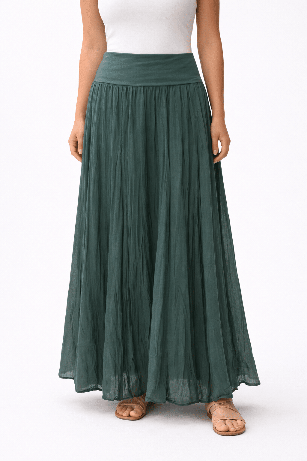 Made in Italy Full‑Panelled Crinkle‑Look Cotton Maxi Skirt with Stretch Waistband