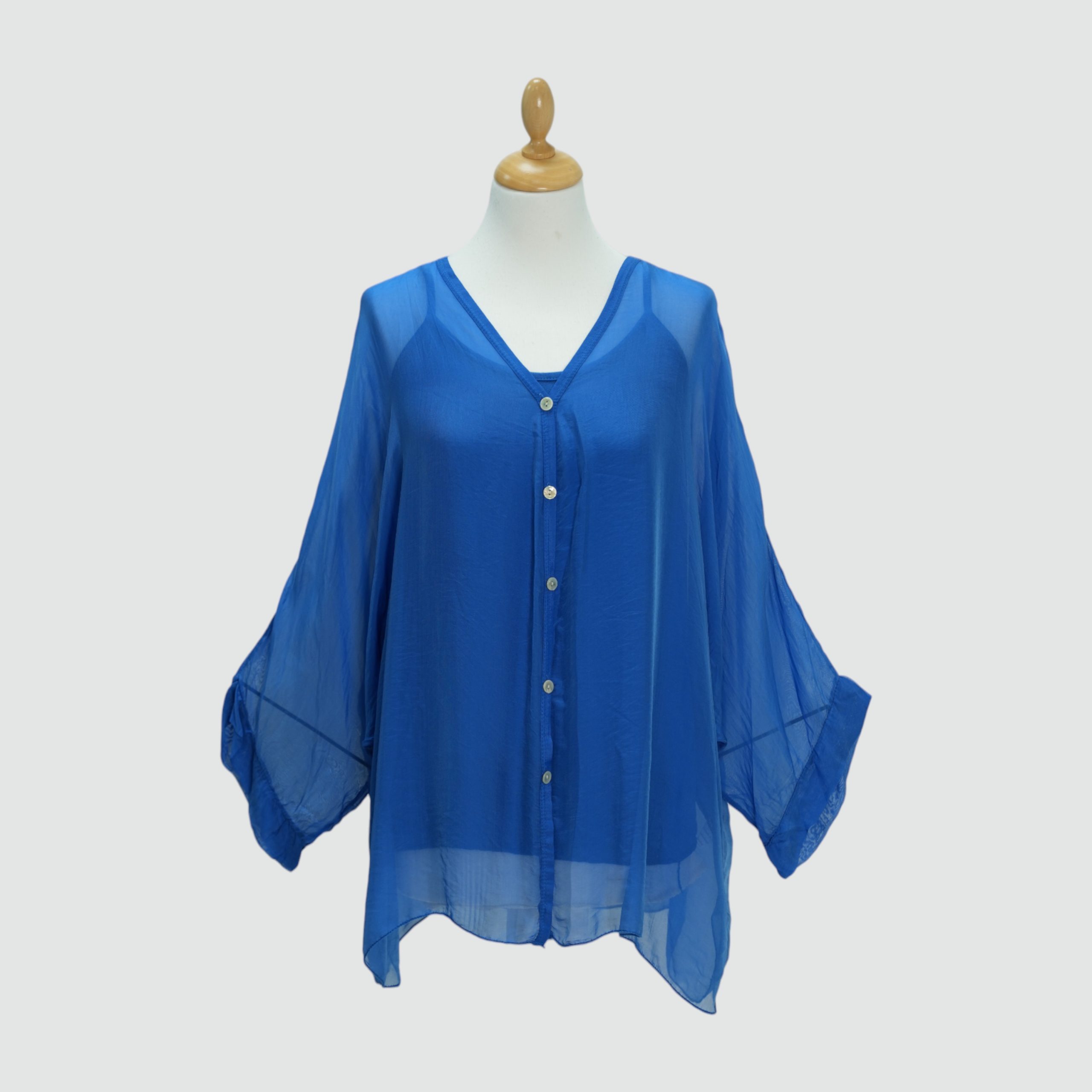 Oversized Silky Button‑Front Batwing Top with Stretch Under‑Top